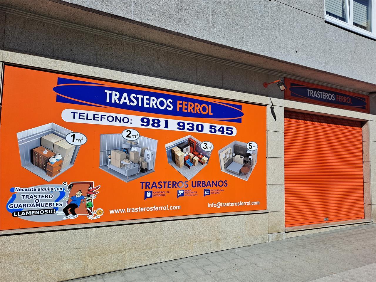 Alquiler de trasteros en Ferrol. Self-storage seguro con videovigilancia 24h. Precios competitivos desde 30€ mensuales. Diferentes tamaños de 3 a 20m². Sistema Prosegur de acceso y alarma. Abierto 365 días al año. Zona de carga/descarga y servicio de transporte y mudanzas.